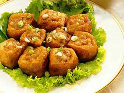 茶宴食品與酒宴亦有區(qū)別,主要是較清淡的面食與果品,統(tǒng)稱茶食。前引《世說》中所提的“粽”即是糯米作的一種茶食,也即是《大金國志》中所提到的茶食——蜜糕。關(guān)于茶食的最好記述見日本的《禪林小歌》,書中在介紹源自中國的唐式茶會(huì)時(shí)寫到:“端上水晶包子(葛粉做)、驢腸羹(似驢腸)、水精紅羹、鱉羹(狀似)、豬羹(形似豬肝)、甫美羹、寸金羹(因金色寸方得名)、白魚羹(白色、似白魚)、骨頭羹、都蘆羹等羹湯類;乳餅(小麥餅、形似乳房)、茶麻餅、饅頭、卷餅、溫餅等餅類及餛飩、螺結(jié)、柳葉面、相皮面、經(jīng)帶面、打面、素面、韭葉面、冷面等。”客人們更相“誣之”(互勸意)。隨后用高緣果盒盛裝龍眼、荔枝、榛子、蘋果、胡桃、榧子、松子、棗杏、栗柿、溫州桔、薯等。由于是禪林,上列食品均為素食。在一般人的茶食中,也有葷菜,如陸游獨(dú)好鴨腳,在《聽雪為客置茶果》中寫到:“不饤栗和梨,猶能烹鴨腳?!?/p>