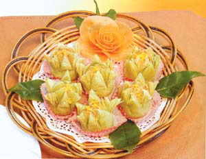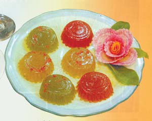 分為鐵觀音、綠茶、花茶三種口味,撒上蜜煉過(guò)的桂花,既美觀又香甜爽口,飯后吃上一盤,享盡口福。
