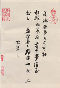 “襄啟,暑熱不及通謁,所苦想已平復。日夕風日酷煩,無處可避。人生韁鎖如此,可嘆可嘆。精茶數片,不一一,襄上。公謹左右……”。