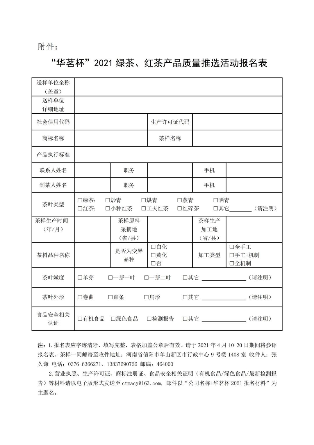 本文標(biāo)題:關(guān)于邀請(qǐng)參加“華茗杯”2021綠茶、紅茶產(chǎn)品質(zhì)量推選活動(dòng)的通知 - 茶葉新聞_中國(guó)茶葉新聞_國(guó)際茶葉新聞