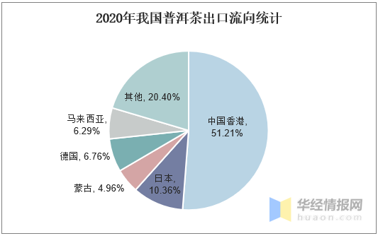 在海外國家當(dāng)中日本、馬來西亞等國是我國普洱茶出口主要對象,2020年除51.21%的出口普洱茶流入香港以外,日本出口量占到我國普洱茶出口總量的10.36%。