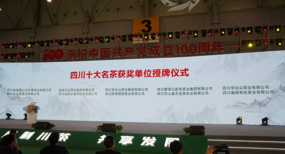 為加快構(gòu)建“5+1”現(xiàn)代產(chǎn)業(yè)體系,加快建設(shè)現(xiàn)代農(nóng)業(yè)“10+3”產(chǎn)業(yè)體系,擦亮川茶金字招牌,打造川茶品牌,創(chuàng)新川茶發(fā)展方式,做大做強精制川茶,按照“2021年精制川茶產(chǎn)業(yè)培育工作要點”要求,2021年3月,四川省茶葉學(xué)會牽頭,聯(lián)合四川省川茶品牌促進(jìn)會、四川省農(nóng)業(yè)科學(xué)院茶葉研究所、中國(四川)國際茶業(yè)博覽會組委會舉辦了“四川十大名茶”及“四川名茶”評選活動。本次開幕式上,對評選活動選拔出的“四川十大名茶”及“四川名茶”榮譽“揭榜”,活動共評選出“四川十大名茶”10只,“四川名茶”25只。竹葉青牌竹葉青綠茶、敘府牌敘府龍芽、米倉山牌廣元黃茶、川紅牌紅貴人紅茶、文君牌邛崍黑茶、躍華牌蒙頂甘露、民族團結(jié)牌茯磚茶、巴山雀舌牌巴山雀舌茶、早白尖牌早白尖綠茶、瀚源牌瀚源黃茶等入選。