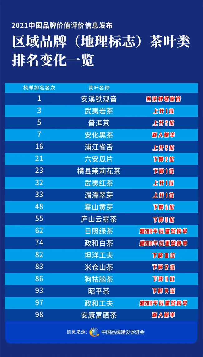 本文標(biāo)題:2021中國品牌價(jià)值評價(jià)信息發(fā)布 區(qū)域品牌(地理標(biāo)志)茶葉類排名變化一覽 - 茶葉新聞_中國茶葉新聞_國際茶葉新聞
