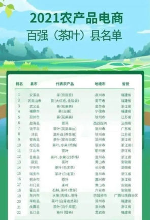 日前,農(nóng)業(yè)農(nóng)村部管理干部學(xué)院、阿里研究院聯(lián)合發(fā)布《農(nóng)產(chǎn)品電商出村進(jìn)城研究:以阿里平臺為例》報告和2021農(nóng)產(chǎn)品電商百強(qiáng)縣名單,其中茶葉類縣市22個入選,廣東省饒平縣是廣東省唯一上榜縣市。