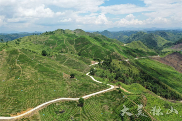 產(chǎn)業(yè)路下方,20來名群眾正在躬身勞作,下苗、覆土,一株株茶苗便種植完成。剛種下的低矮茶苗,與產(chǎn)業(yè)路上方郁郁蔥蔥的茶山形成強(qiáng)烈反差。
