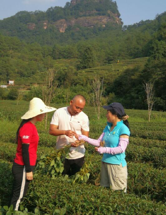 為探索茶園高效、生態(tài)、環(huán)保建設(shè)模式,福建農(nóng)林大學(xué)根系生物學(xué)研究中心主任廖紅與團(tuán)隊(duì)走進(jìn)星村鎮(zhèn),把高效豆科作物提高茶樹(shù)的養(yǎng)分利用效率,并達(dá)到減肥增效等科研成果,運(yùn)用到茶葉基地建設(shè),以提高茶葉的產(chǎn)量及質(zhì)量。廖紅教授認(rèn)為,茶豆套種作用明顯,大豆可產(chǎn)生根瘤菌,具有固氮作用,增加土壤肥力,茶園里套種大豆可少下或不下氮肥。同時(shí),金龜子、蚜蟲(chóng)等更喜歡大豆葉子,從而減少茶樹(shù)蟲(chóng)害。還能增加茶葉產(chǎn)量,實(shí)驗(yàn)表明,靠近大豆的茶樹(shù)每平方米可長(zhǎng)出190個(gè)芽梢數(shù),比沒(méi)有靠近大豆的茶樹(shù)多出一倍。